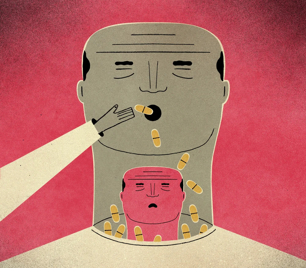 Illustration for the Paula Span article: "Could Be the Thyroid; Could be Ennui. Either Way the Drug Isn't Helping" / Catherine Gilmore-Barnes AD.